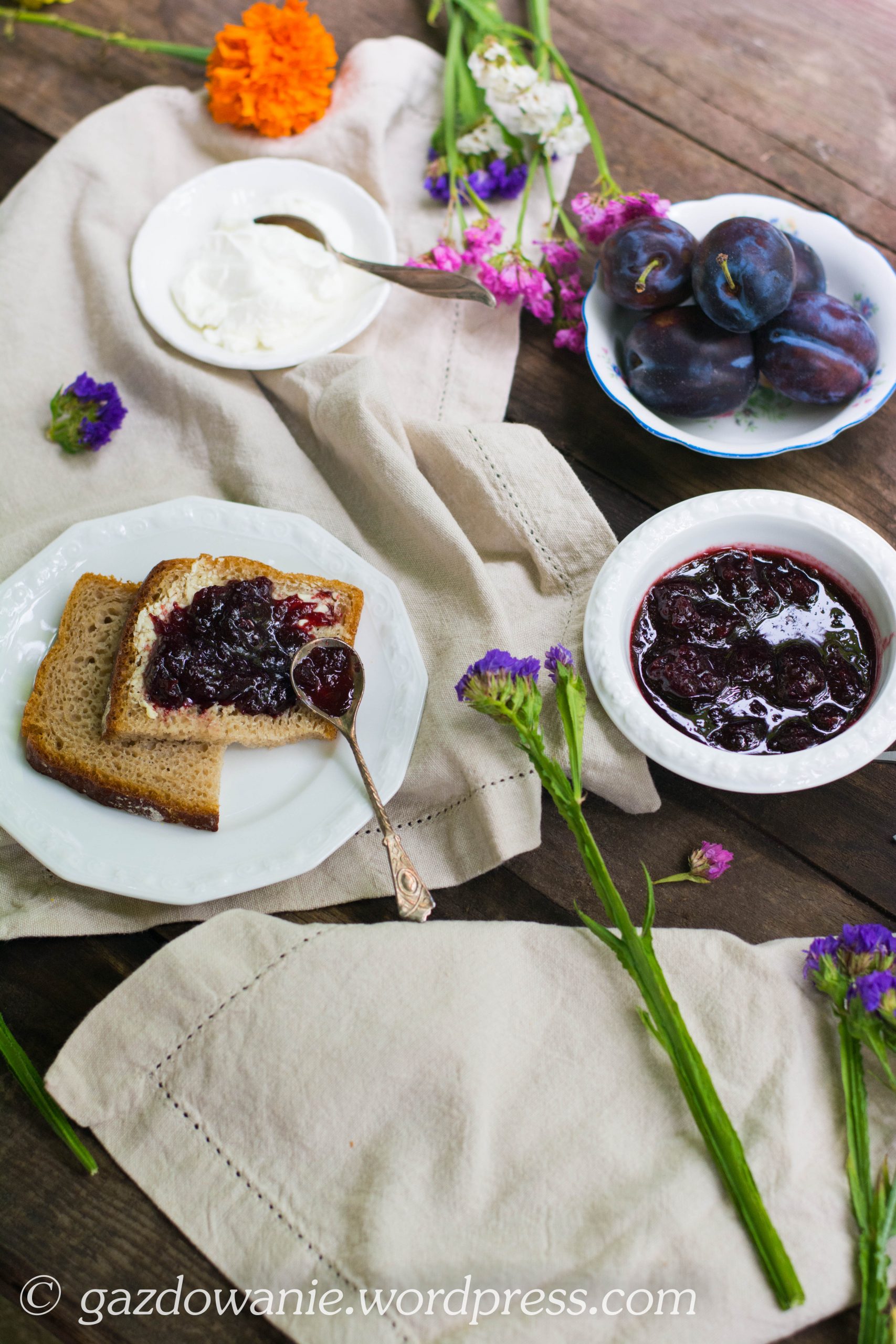 Ten przepis powinien brzmieć tak: weź miskę wydrylowanych wiśni, dorzuć sowitą garść cukru, szczyptę kardamonu i smaż na średnim ogniu. Jak w staroświeckiej książce kucharskiej. Ale zamiast tego mamy precyzyjnie określone proporcje składników, bo przepis pochodzi z wydanej w zeszłym roku książki Dzień dobry. Śniadania z Małgosią Mintą (pisałam o niej tutaj) Krok po kroku testuję pomysły w niej zawarte i przyznam, że wiele z tych przepisów bardzo przypadło mi do gustu, ponieważ są proste i nie wymagają wielu wymyślnych składników. Jedliśmy już kokosową granolę, drożdżówki z cynamonem, bliny z wędzoną rybą i śmietaną, a teraz usmażyłam konfiturę z wiśni.