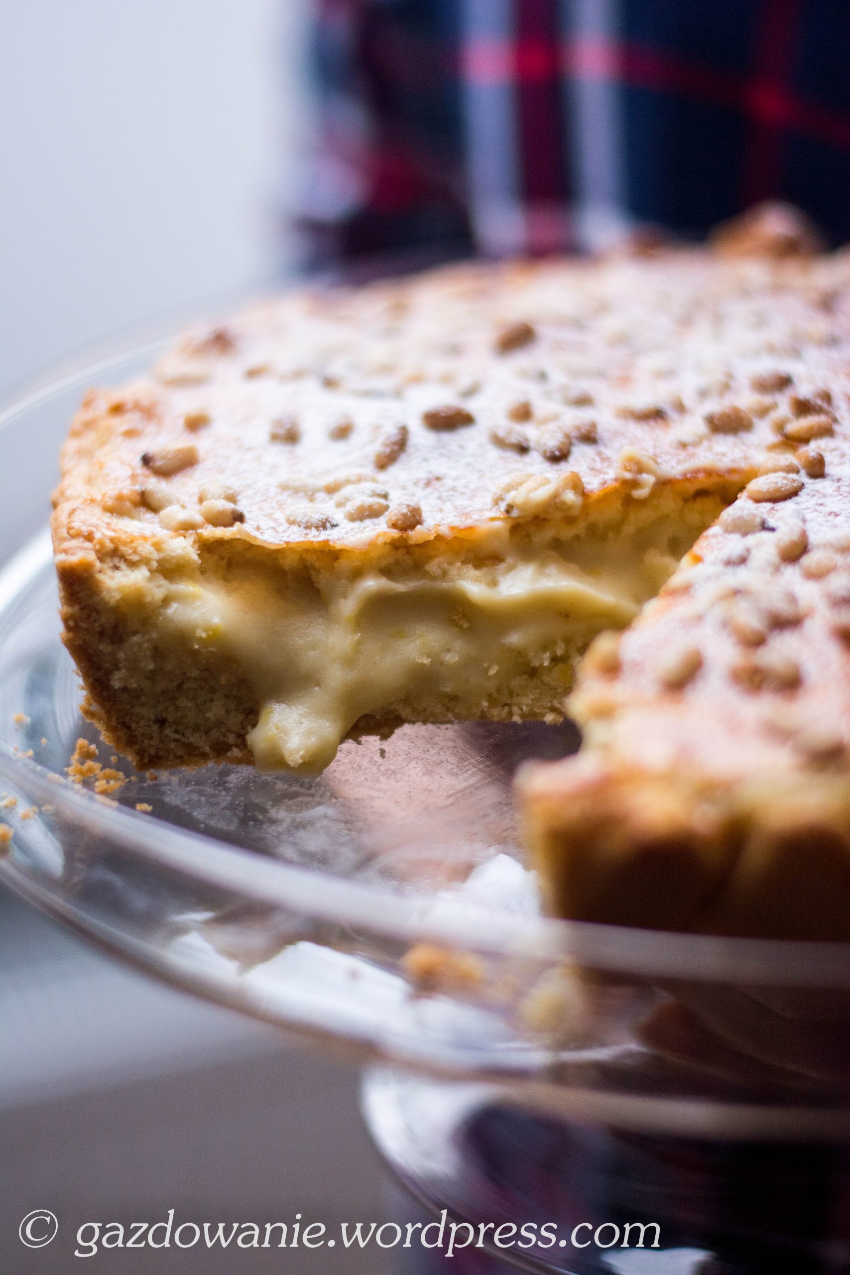 Domowy budyń, którym jest nadziane to ciasto nie ma sobie równych. Trzeba się najeść na studiach i obozach harcerskich niemałych ilości budyniu z paczki, by po latach docenić smak tego deseru domowej roboty. Słodkie, kruche ciasto okalające cytrynowe nadzienie budyniowe, a na wierzchu słonawe orzeszki piniowe, które nieco przełamują tę niebiańską słodycz. To jest to!