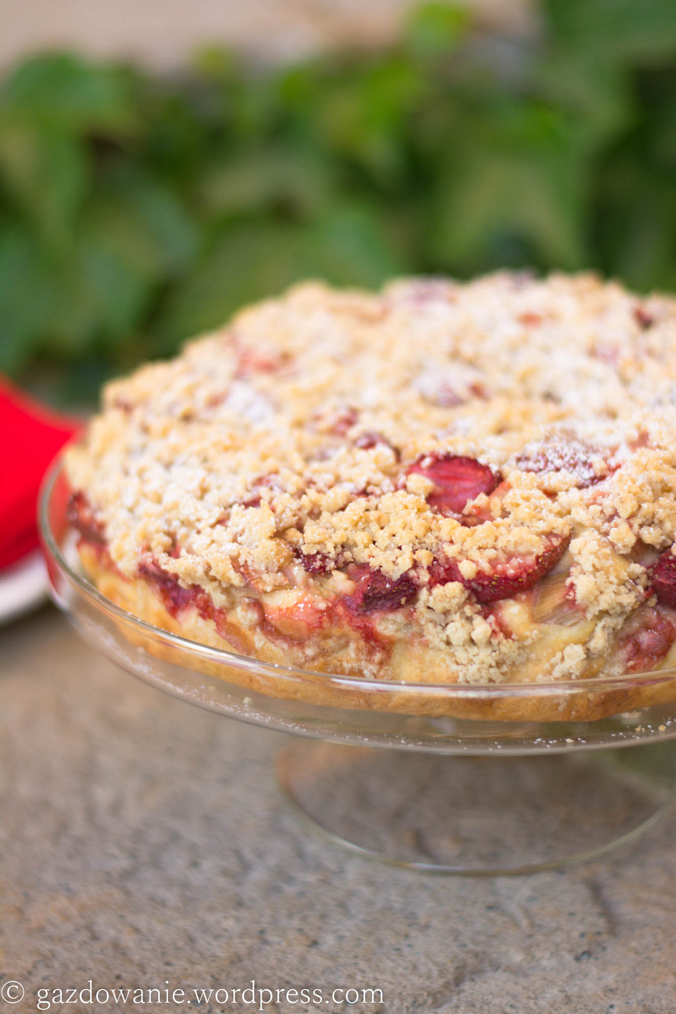 CIASTO DROŻDŻOWE Z TRUSKAWKAMI, RABARBAREM I KRUSZONKĄ