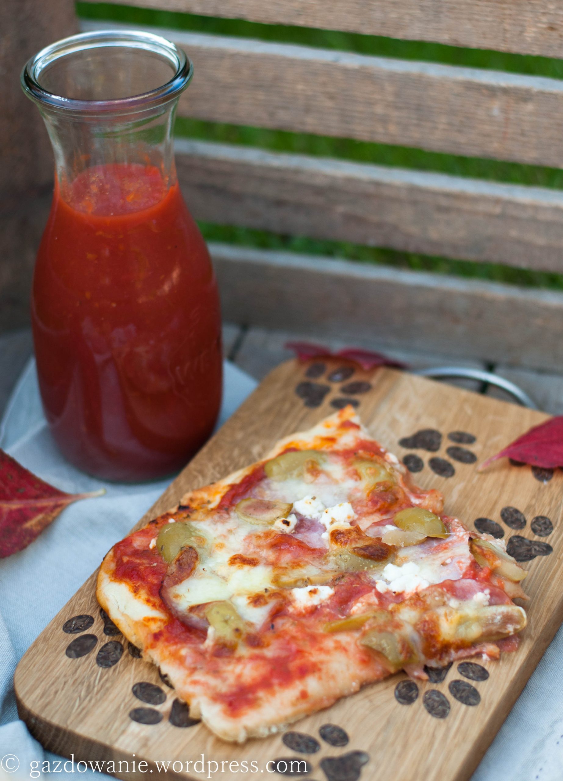 Czasem „chodzi” za mną pizza. Nie taka z włoskiej trattorii czy sieciówki, ale domowej roboty. Ciasto na taką pizzę cierpliwie wyrasta w cieple i zaciszu kuchni, by następnie rozłożone na blasze wysmarowanej oliwą z oliwek urosnąć w piekarniku. Robię całą blachę takiej pizzy, objadamy się nią, a to, co pozostanie z obżarstwa pakuję na następny dzień do pracy albo zawożę do Rodziców, którzy przekonują się do nowych smaków. Tak różnych od tradycyjnej kuchni polskiej.