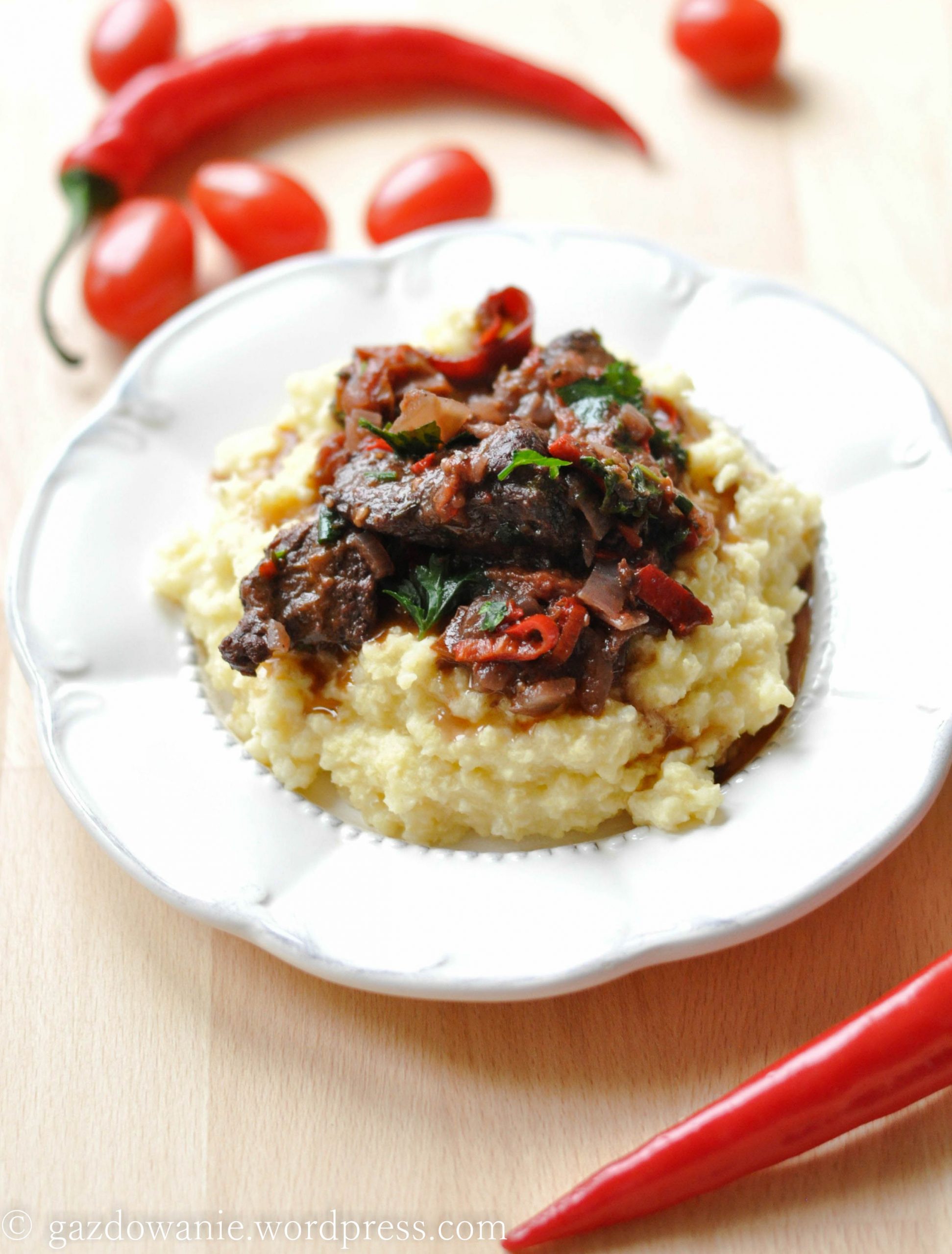 To jedno z tych dań, za którymi przepada S. Co jakiś czas dopytuje się kiedy znowu przyrządzę wołowinę z chilli podaną na kaszy jaglanej. Chyba wiem dlaczego tak się dopomina… Po pierwsze: mięso. Czerwone. Po drugie: palące papryczki chilli. Po trzecie: czerwone wytrawne wino. To połączenie sprawia, że raz na jakiś czas staję przy kuchni, by spędzić grubo ponad dwie godziny siekając, mieszając, doprawiając i powoli dusząc wołowinę dla mego Miłego mięsożercy.