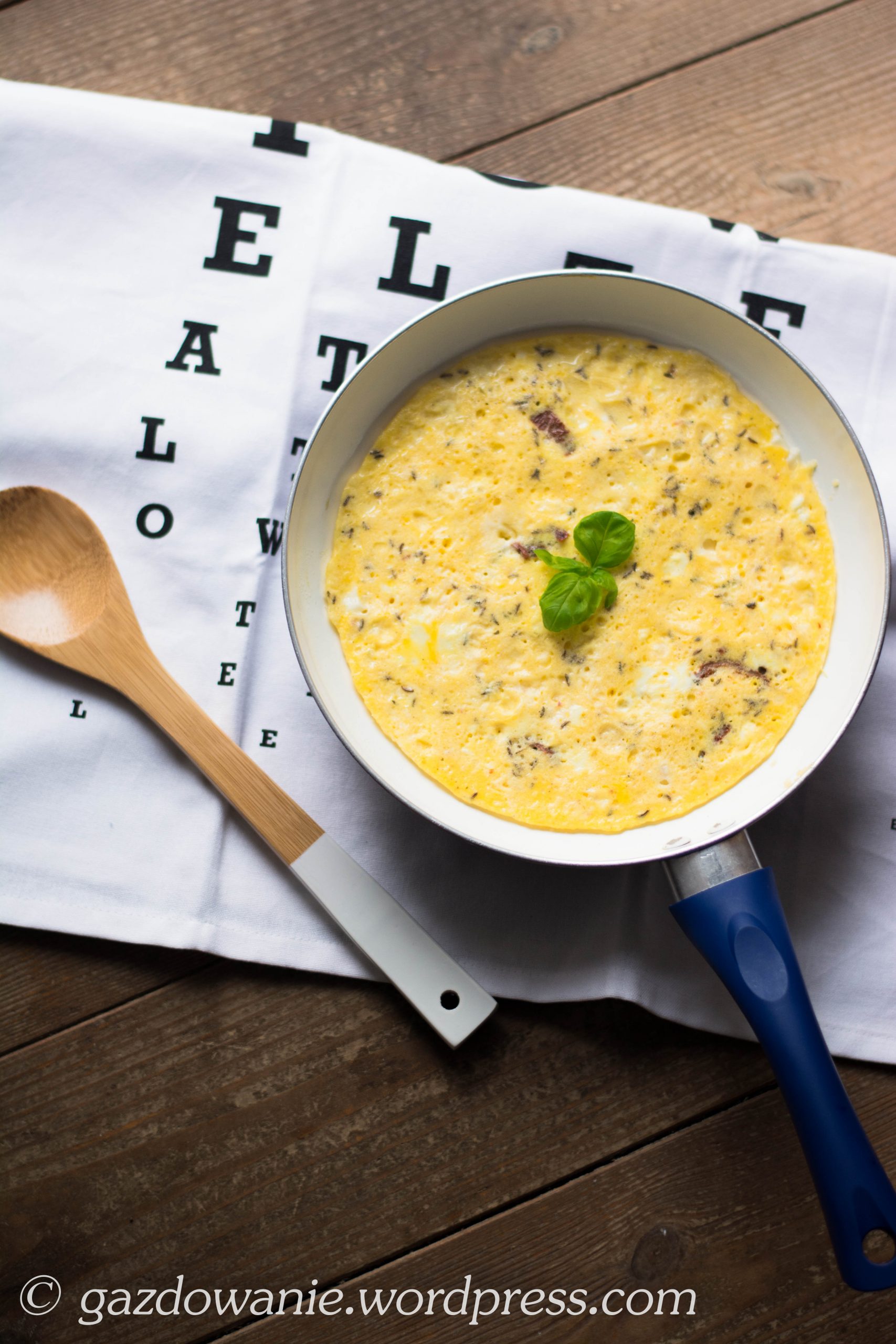 Dzielę się zatem moimi eksperymentami i proponuję Wam dziś prosty i ekspresowy przepis na omlet z dwoma rodzajami sera, suszonymi pomidorami i kminkiem. Banalnie proste, lecz pyszne połączenie.