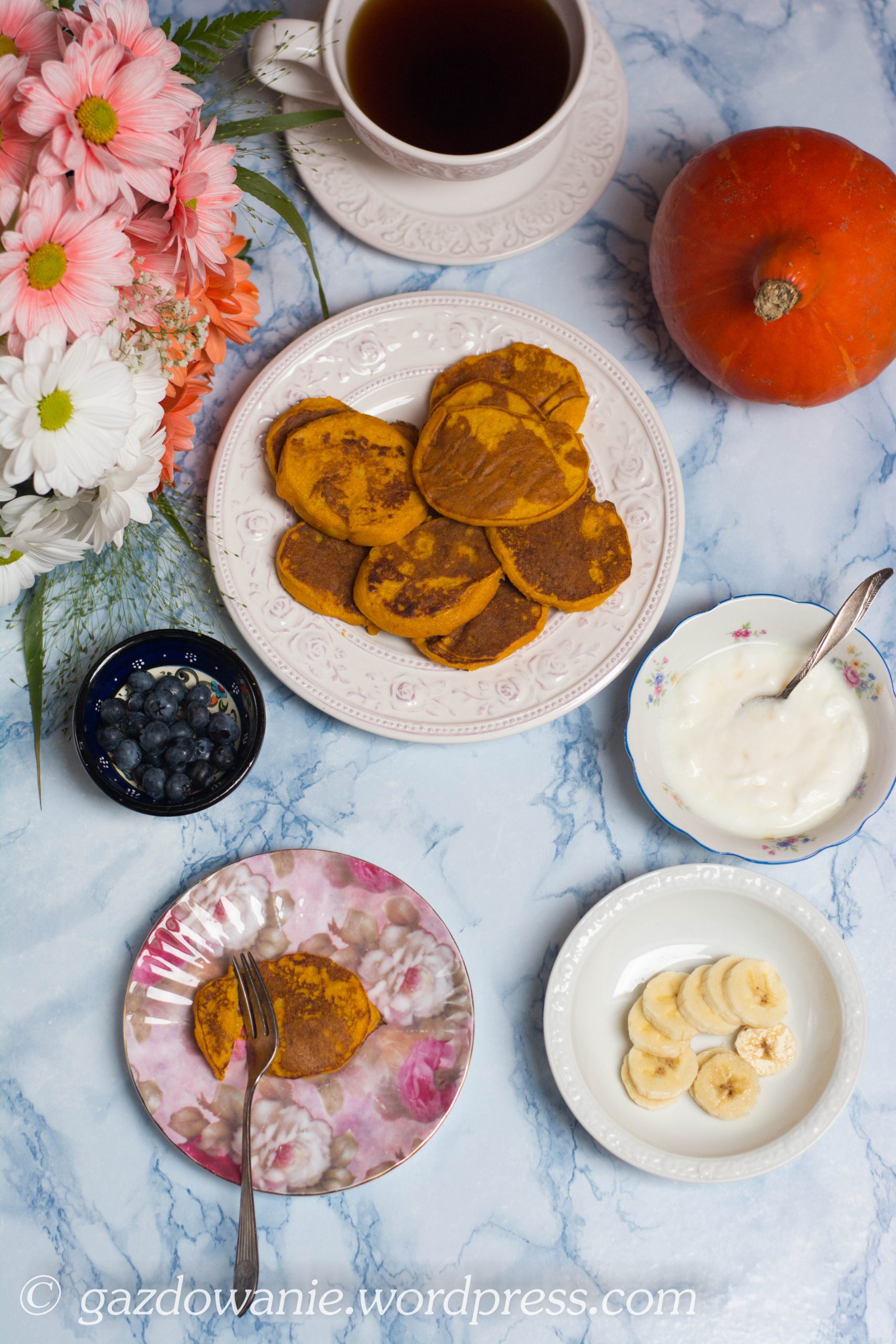 Moja córcia jeszcze nie jada takich potraw, ale już teraz serwuję jej dynię w wersji łagodnej, w sam raz dla małego brzuszka. Od kiedy okazało się, że jest fanką zupy dyniowej, poszłam za ciosem i przygotowałam jej na śniadanie pankejki z dodatkiem pureé z pieczonej dyni i banana. Ziazi przypadła do gustu również ta odsłona tego warzywa na talerzu.
