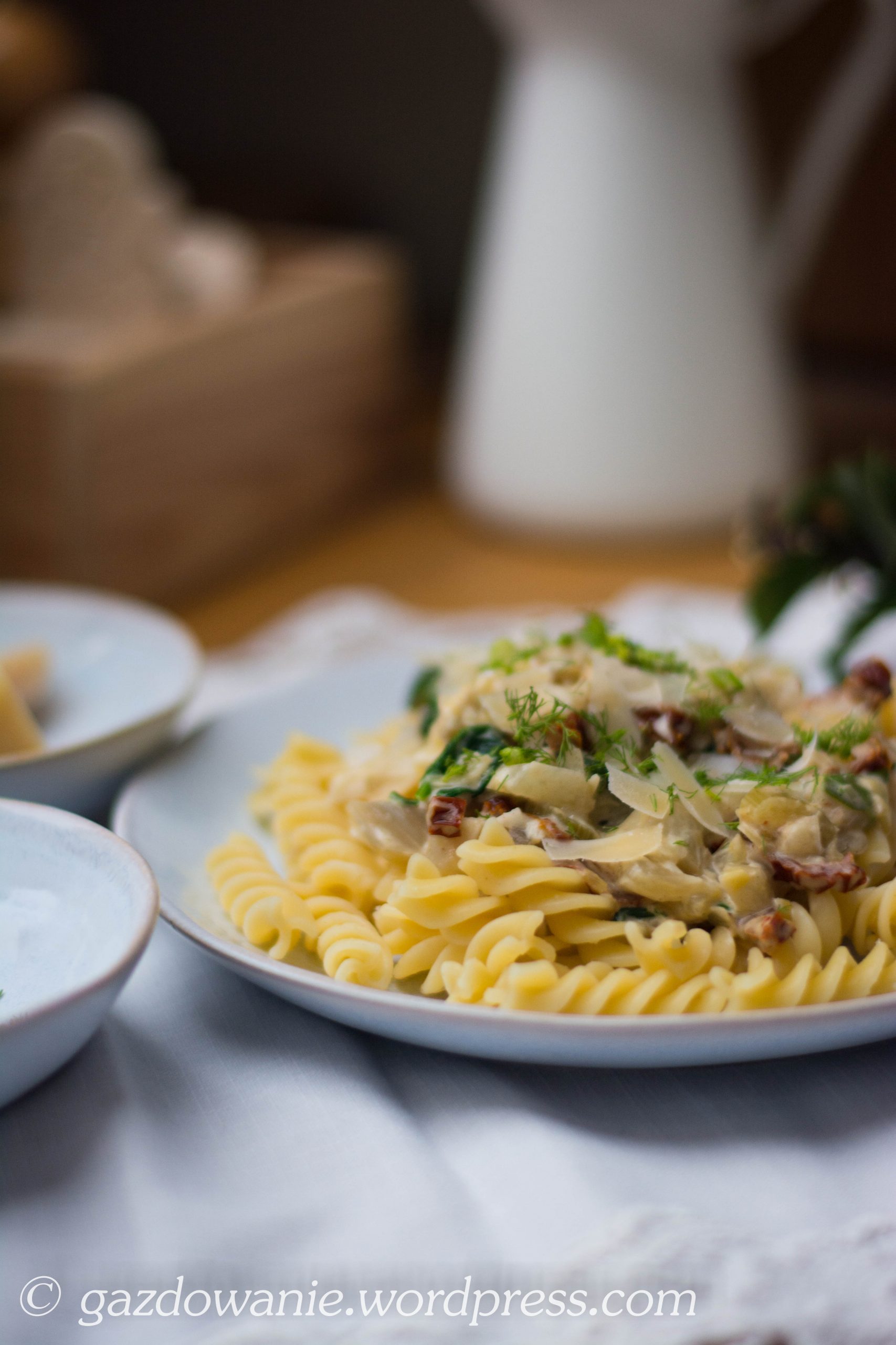 Zrób coś dla Ziemi, czyli makaron w sosie śmietanowym z fenkułem, szpinakiem i suszonymi pomidorami